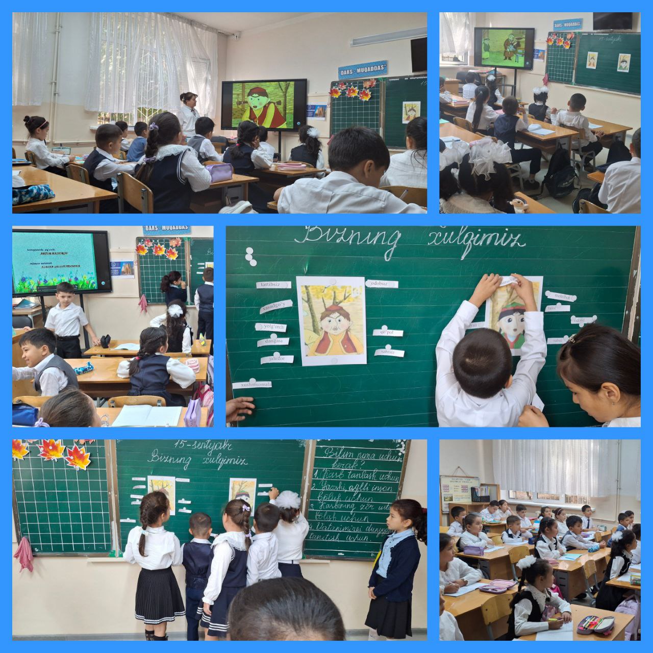 2-B sinfida o‘tkazilgan "Bizning xulqimiz" mavzusidagi Kelajak soatidan lavhalar