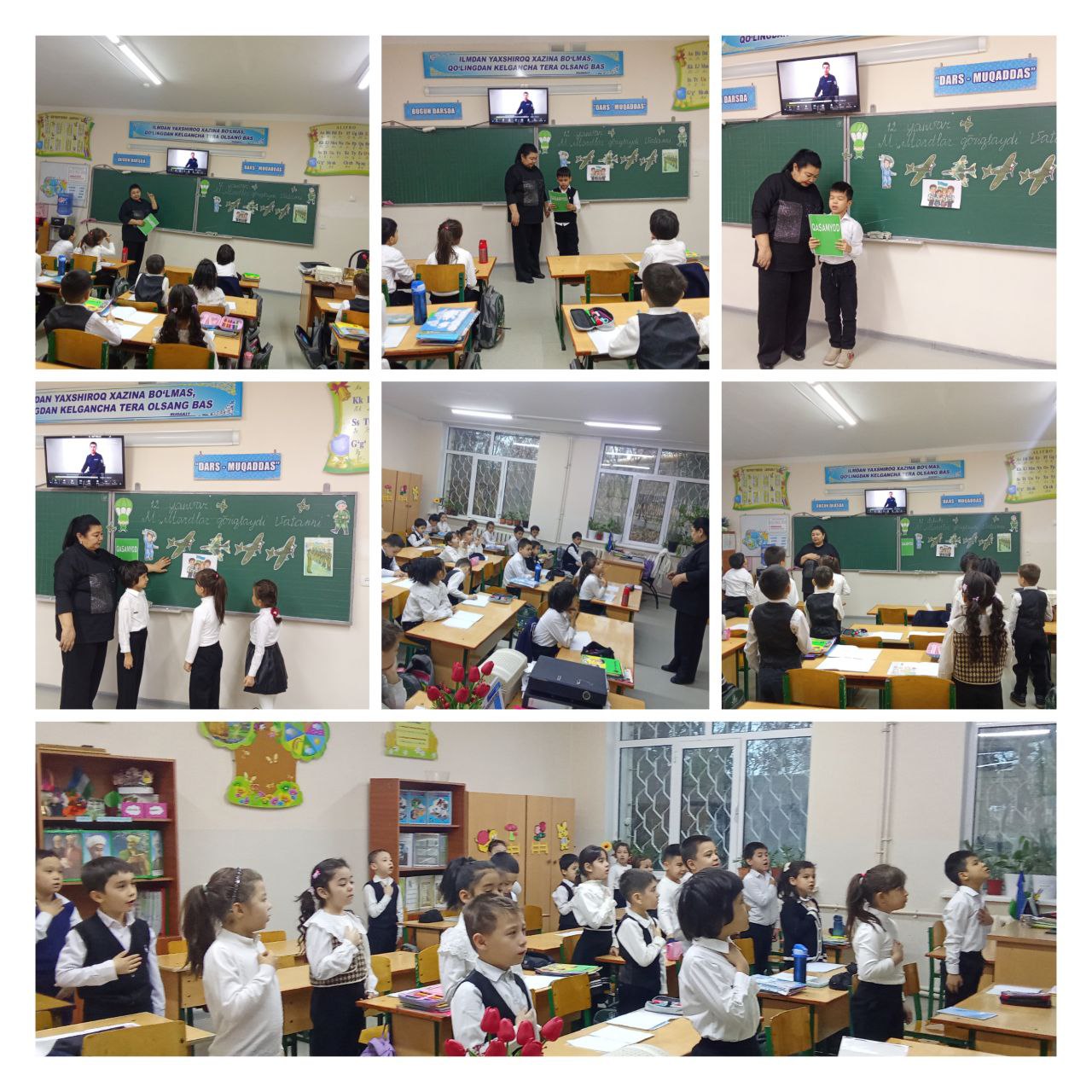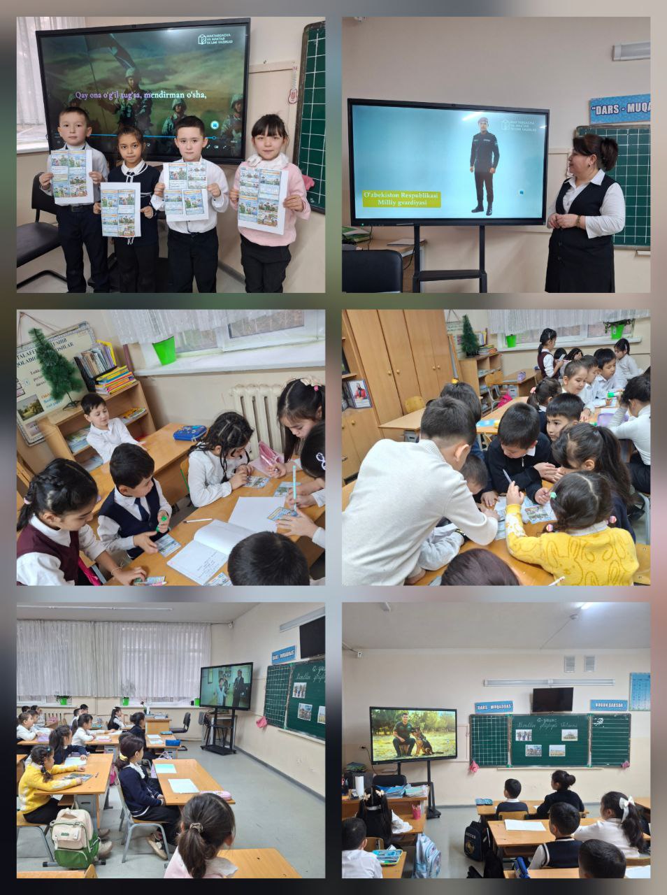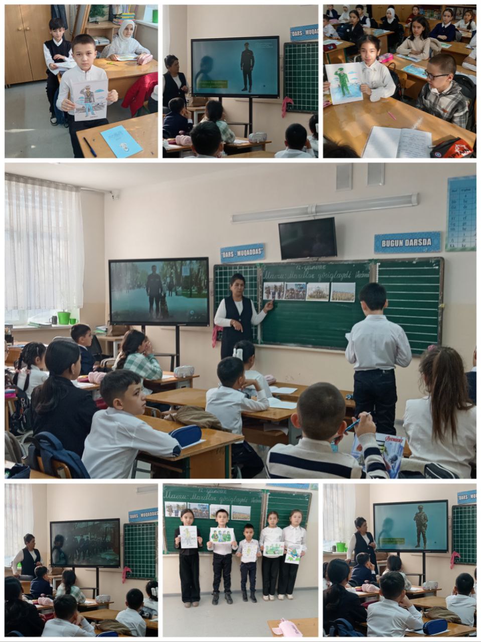 1 А - sinfida"Mardlar qo`riqlaydi vatanni" mavzusida o`tkazilgan kelajak soati darsidan lavhalar
